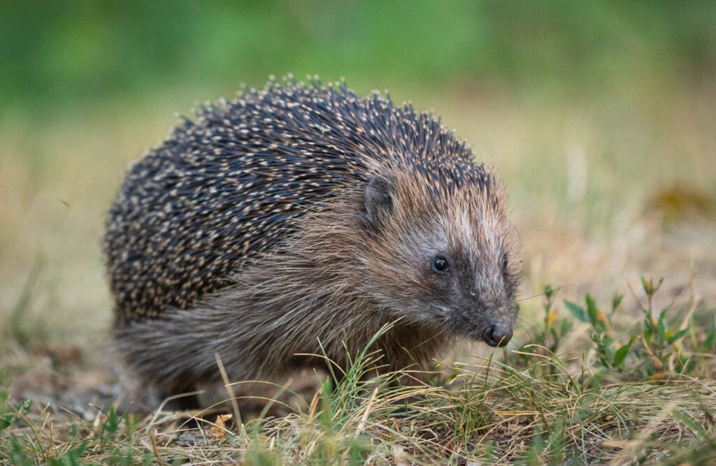 Unser West- oder Braunbrustigel (Erinaceus europaeus) lebt in ganz Europa westlich von Polen und der Slowakei, dazu in Skandinavien. Ausgewachsen kann er 20-30 cm lang werden und vor seinem fast halbjährigen Winterschlaf bis zu 1,5 kg wiegen. Die Hälfte dieses Gewichts verliert er im Schlaf bis zum Frühjahr. Typisch ist sein braunmeliertes Schutzkleid aus bis zu 7.500 Stacheln über einem grauen bis dunklen Fell. Die Beine sind kurz und kräftig, der Kopf ist mit einer langen, beweglichen Schnauze versehen. Die Augen sind rund und klein, die Ohren sind ebenfalls klein und fast völlig im Fell verborgen. Sehen kann er schlecht, stattdessen orientiert sich der Igel über Gehör, Geruchs- und Tastsinn. Vielfältig sind seine Lautäußerungen: Schnaufen, grunzen, schnarchen, röcheln und keckern, sogar husten, kreischen und bellen kann er. Der Igel zählt mit Maulwurf und Spitzmaus zu den Insektenfressern. Gerne nimmt er Regenwürmer und Schnecken, dazu mitunter Aas. Aber auch Früchte, Beeren, junge Triebe und Wurzeln gehören zu seinem vielfältigen Nahrungsspektrum.