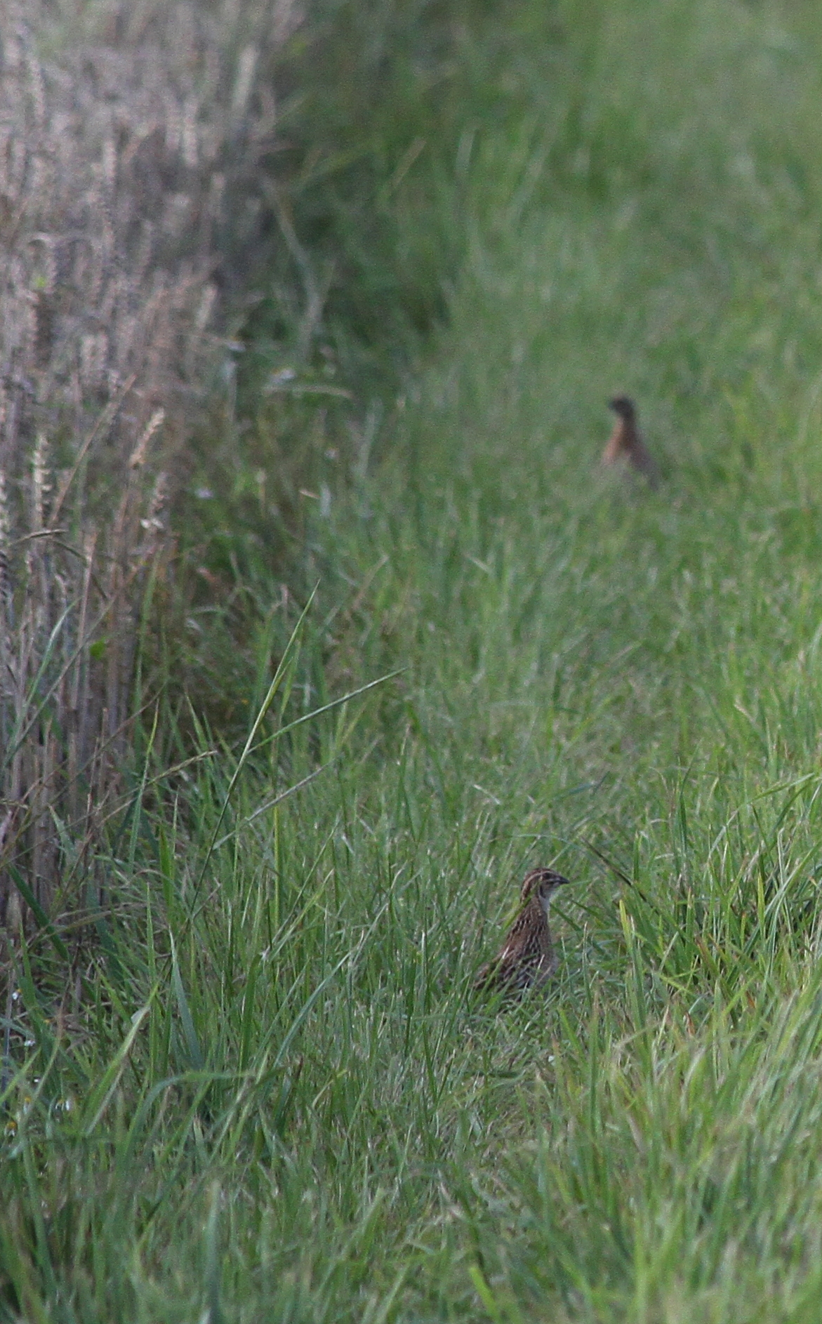 - mind. 3 Wachteln, rufend (zwei Wachteln konnte ich mehrere Minuten lang sehr schön beobachten wie sie auf einem Feldweg umherliefen und sangen/schlugen) s. Bild