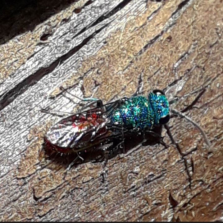 Heute waren bei uns im Garten zwei Exemplare der Gemeinen Goldwespe unterwegs.