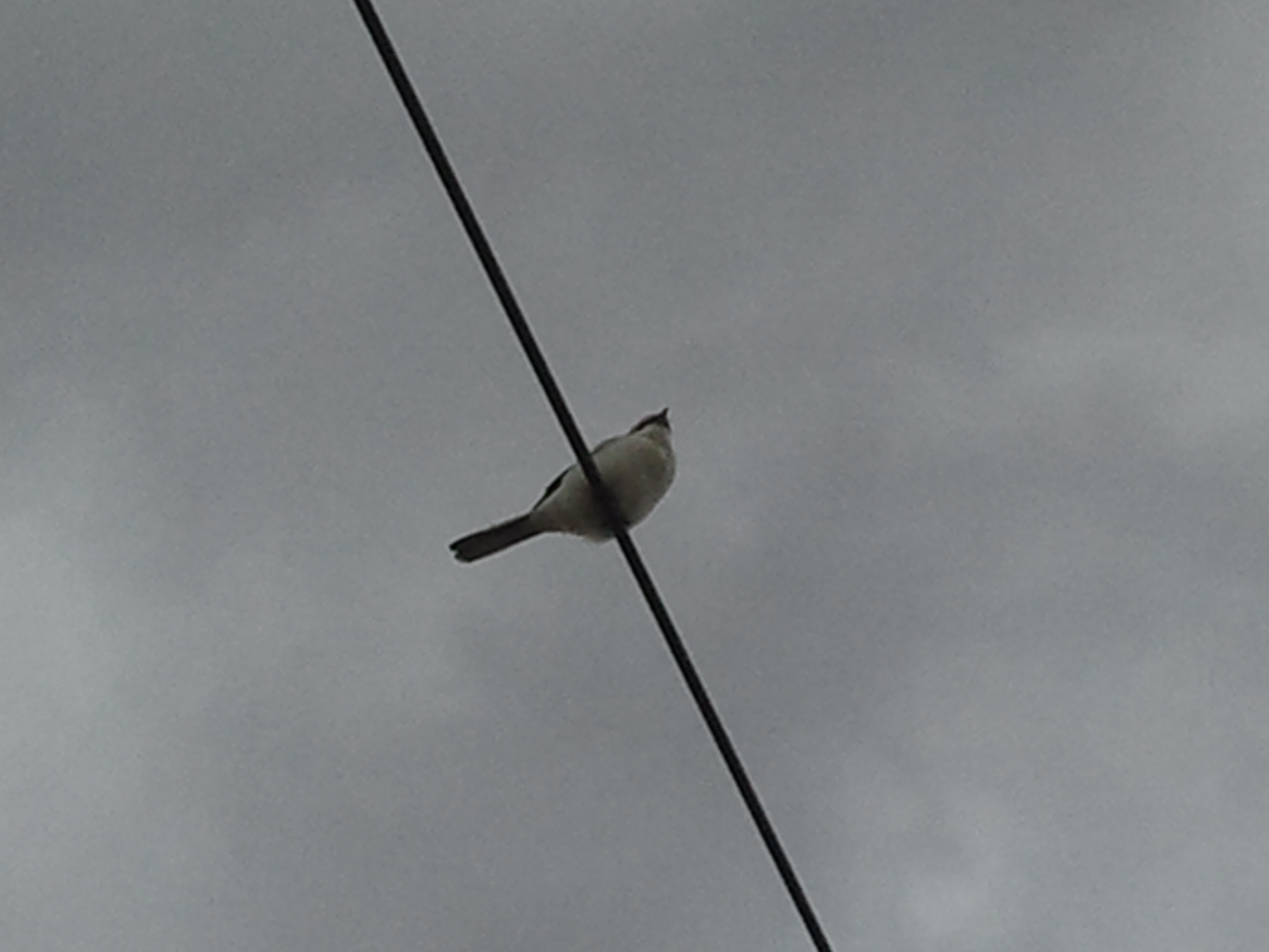 Auf der Oberleitung im Feldweg von Wasenbach nach Habenscheid saß gegen 15.00Uhr ein Raubwürger. (Leider nur ein Handyfoto).