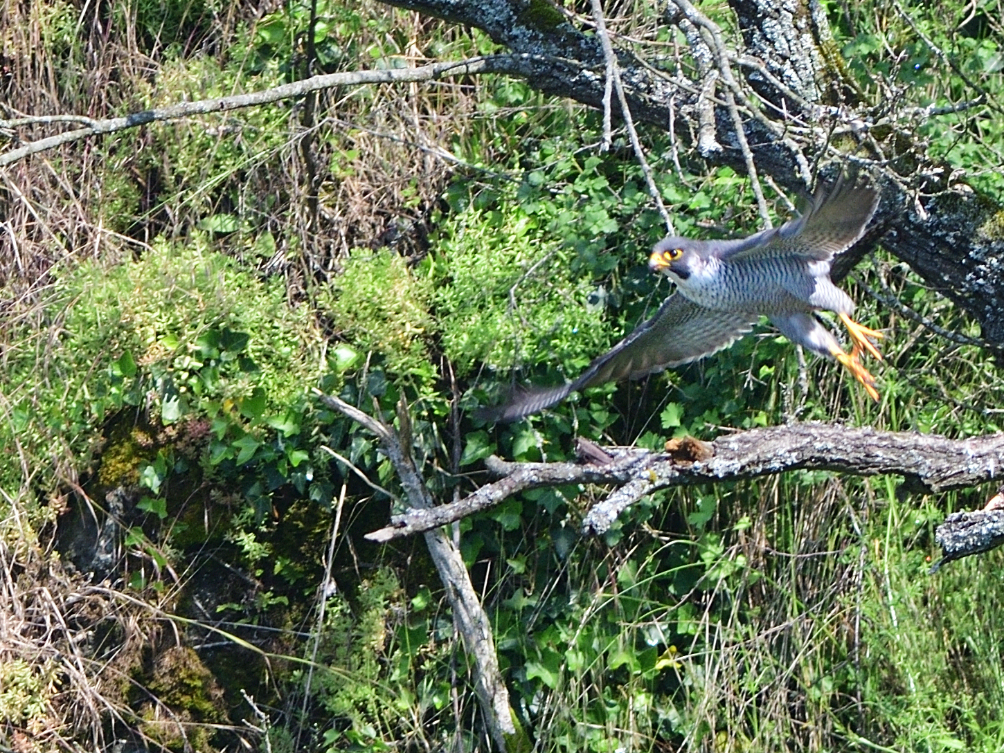 An gewohnter Stelle war heute ein männlicher Wanderfalke zu sehen. Der "Vogel des Jahres 2018" ist zwar selten und ist streng geschützt, gilt aber nicht mehr als bedroht. Inwischen meidet der schnelle Falke oft Felswände als Brutplatz, weil diese auch von den Uhus beansprucht werden.